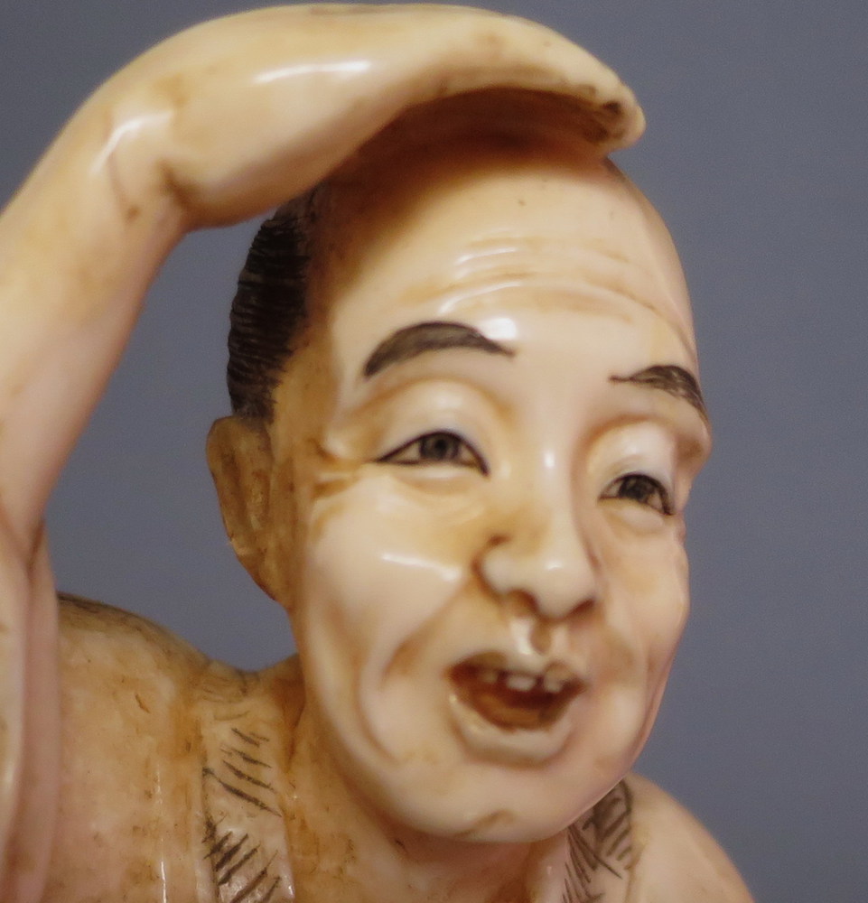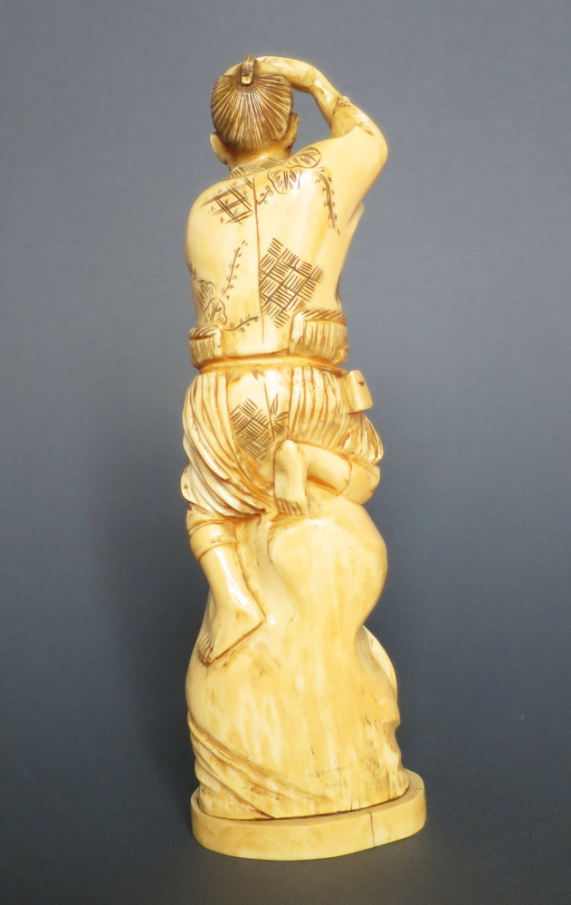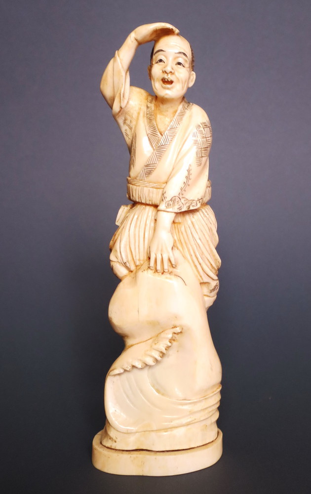 GIAPPONE, Avorio "figura di pescatore" - H 22 cm - firmato alla base -...