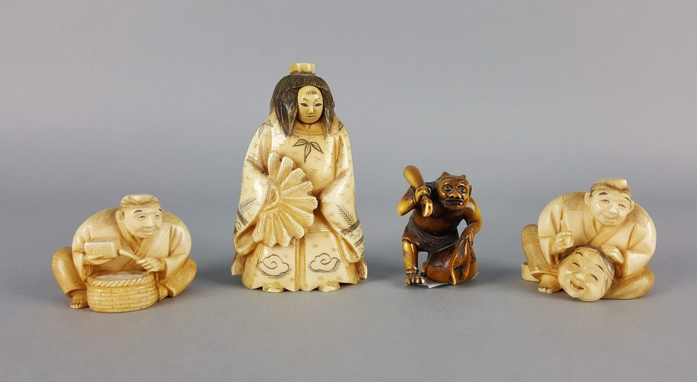 GIAPPONE, Quattro netzuke in avorio varie dimensioni e misure - Giappone fine XIX sec.