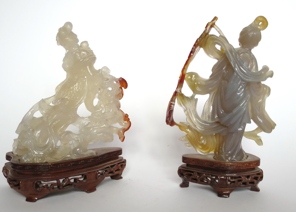 Lot 317 | CINA, Coppia di sculture in giadaite "guainin" - H cm 13 - Cina