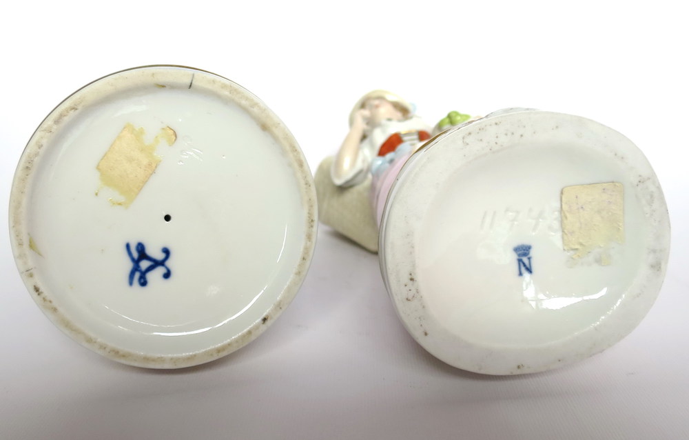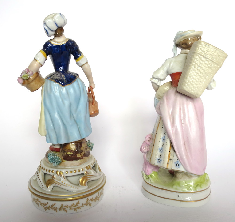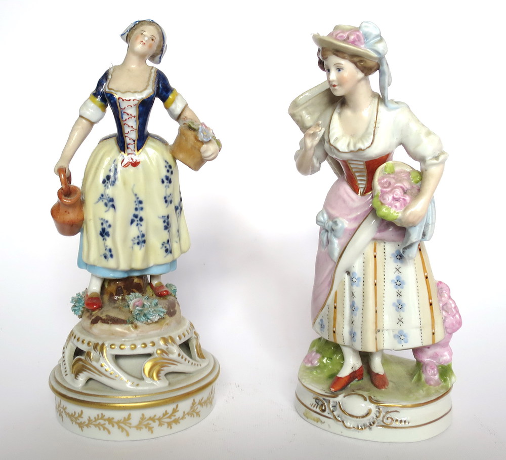STATUETTE, Due figure femminili in porcellana - Capo di monte - H 17.5 cm e H 19 cm