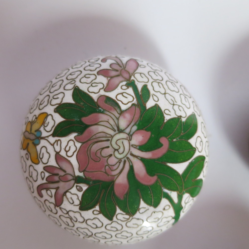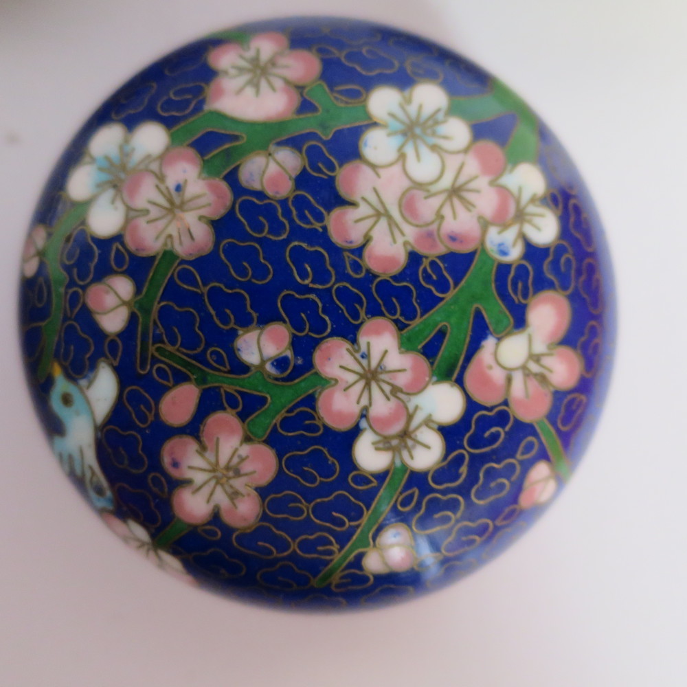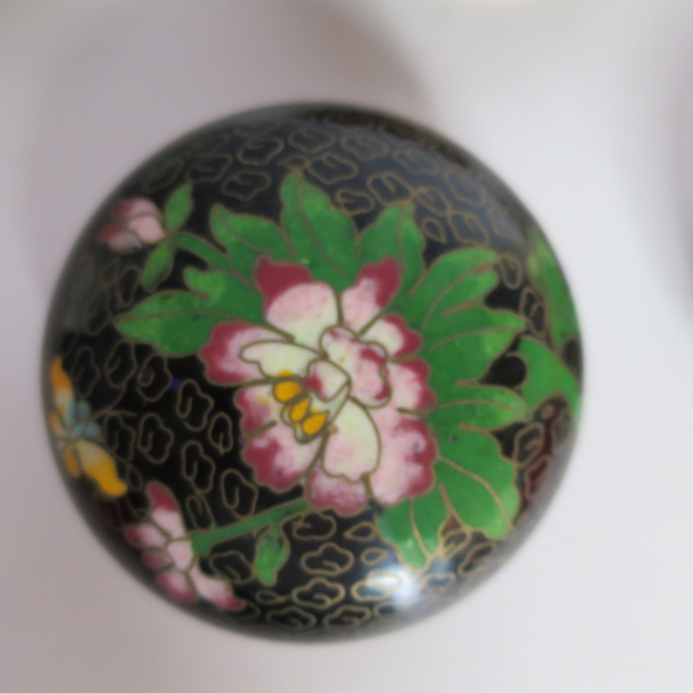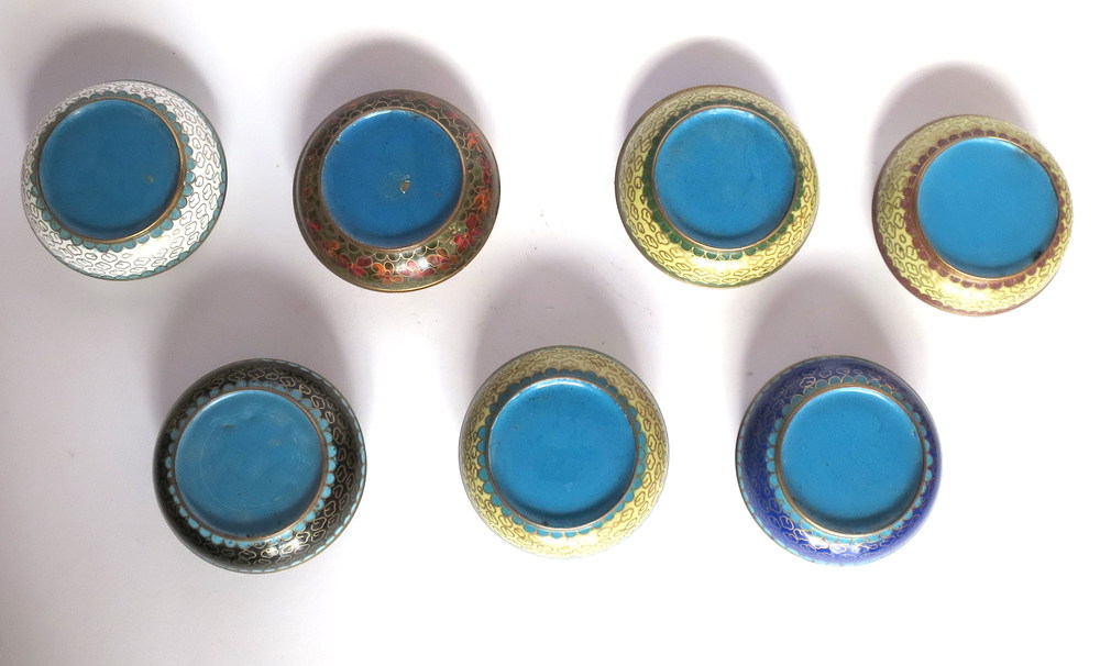 SCATOLETTE, Sette scatolette in cloisonne con diversi decori a motivo floreale - diam. 8 cm
