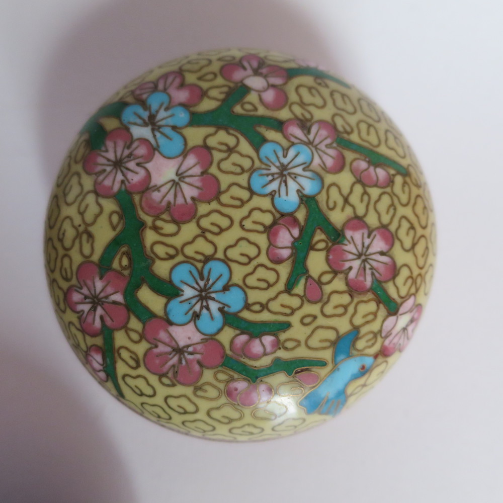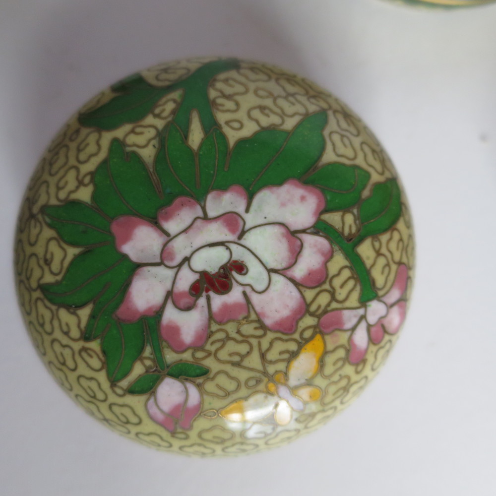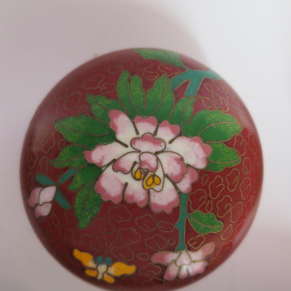 SCATOLETTE, Sette scatolette in cloisonne con diversi decori a motivo floreale - diam. 8 cm