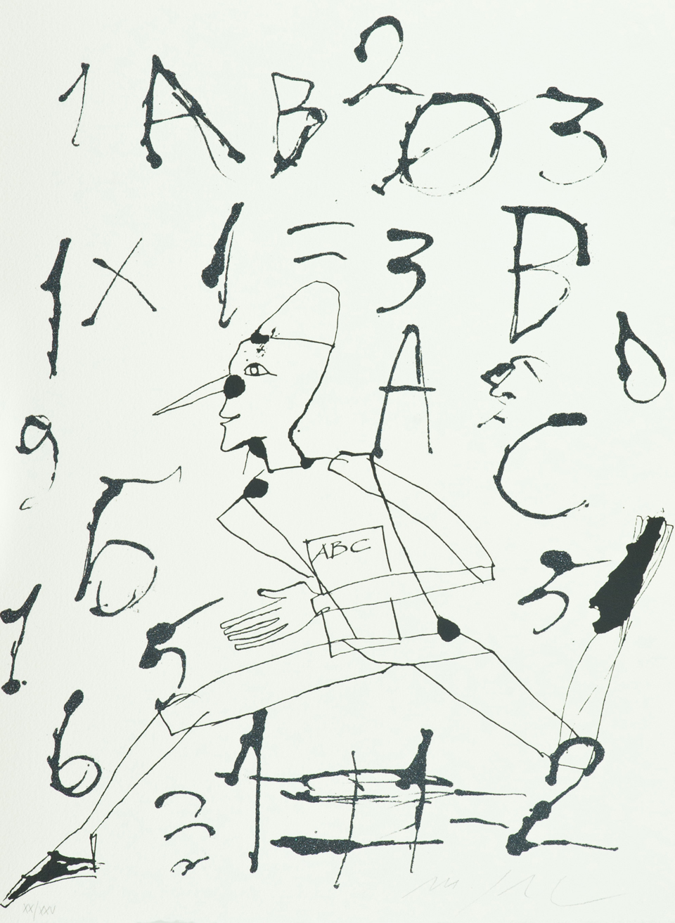 Mimmo Paladino Pinocchio che corre Litografia su carta, cm. 61x45, es. XX/XXV...
