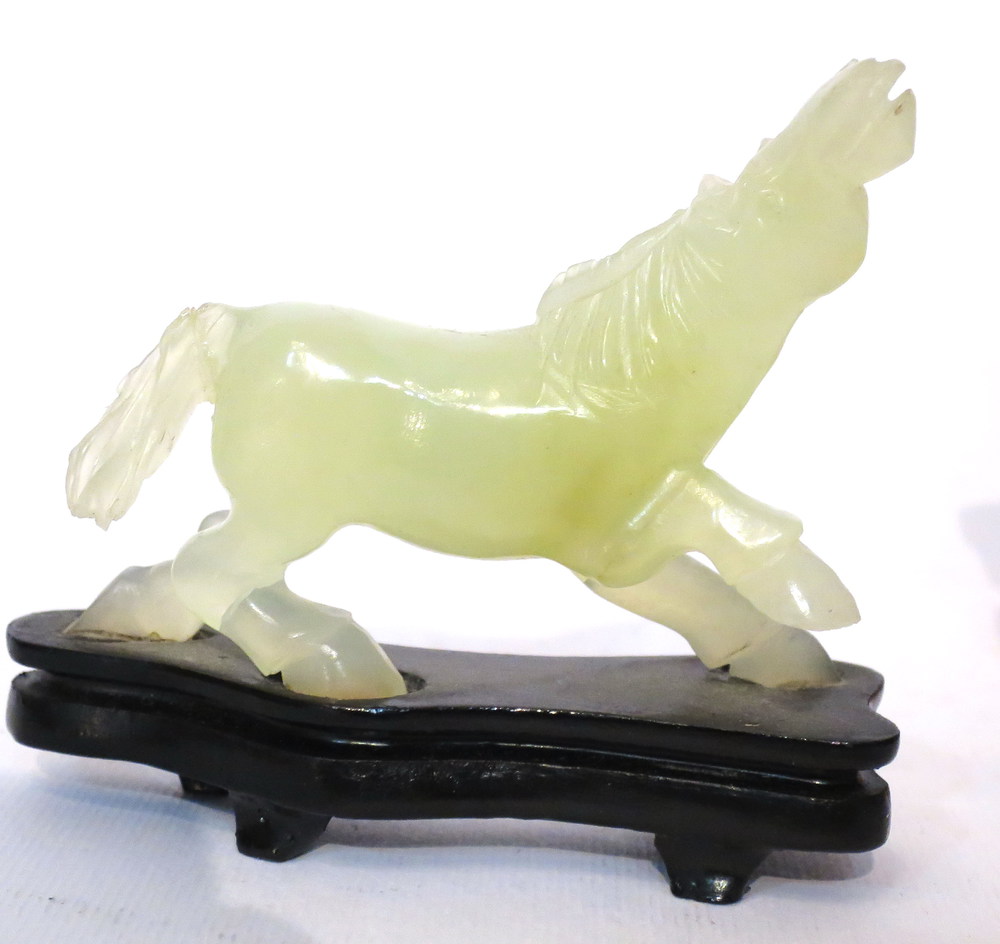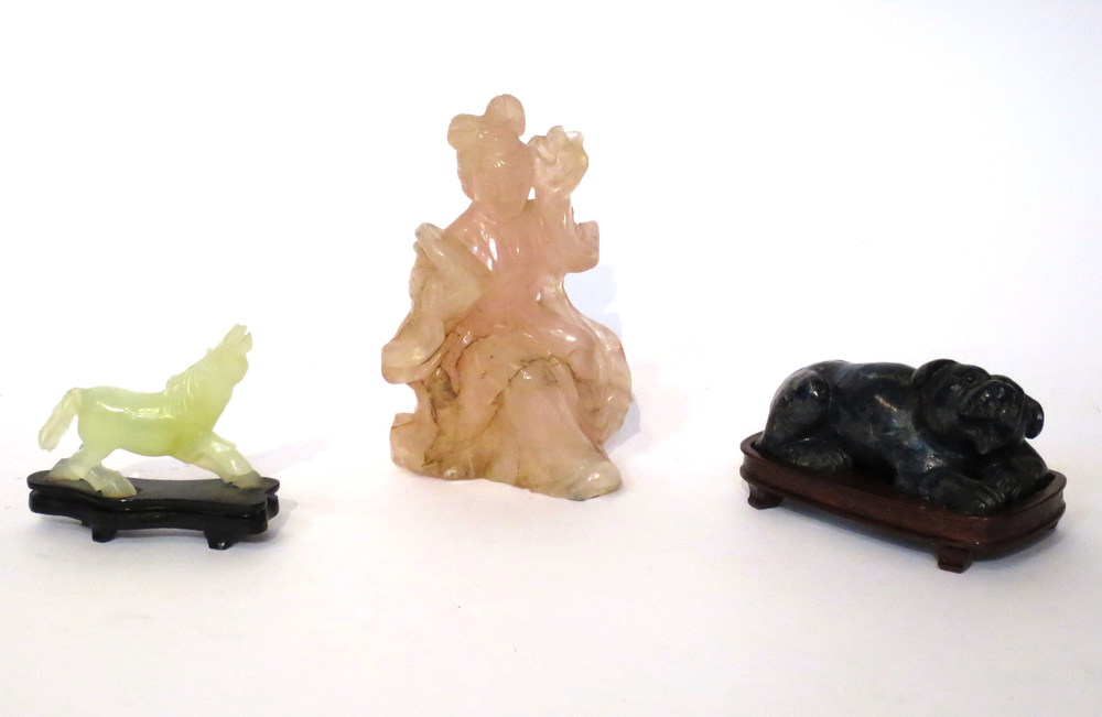 Lot 337 | SCULTURE, Sculture di guainin in quarzo rosa, cavallo in giadaite, cane in...