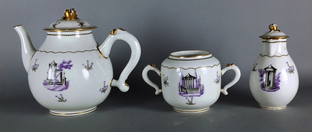 GIO' PONTI, Gi� Ponti - Milano, 1891/1979 - Servizio da the in porcellana composto da teiera,lattiera e zuccheriera - serie Herculanea - manifattura Richard Ginori-Doccia - marcati sotto la base