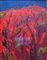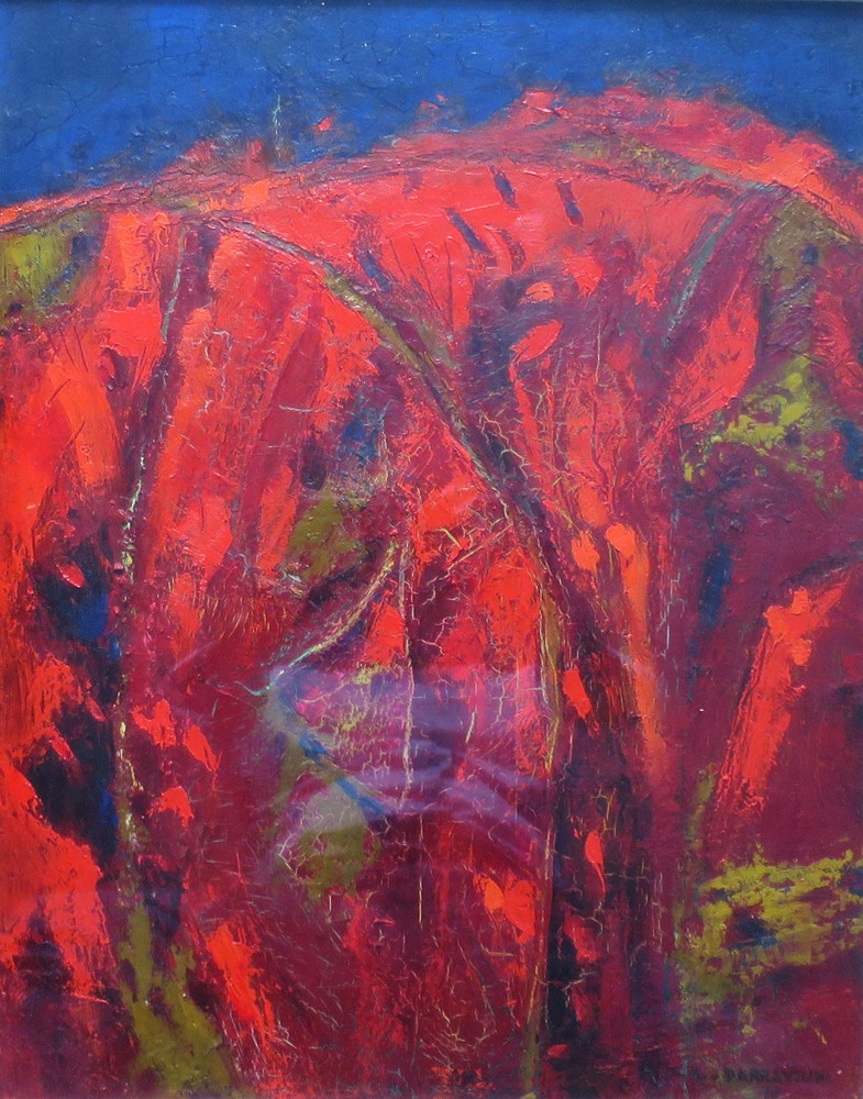 LINO PARRAVICINI, Lino Parravicini olio su cartone telato raff. "Colline in fiamme" - cm 40 x 50 - firmato e datato '72 in basso a dx