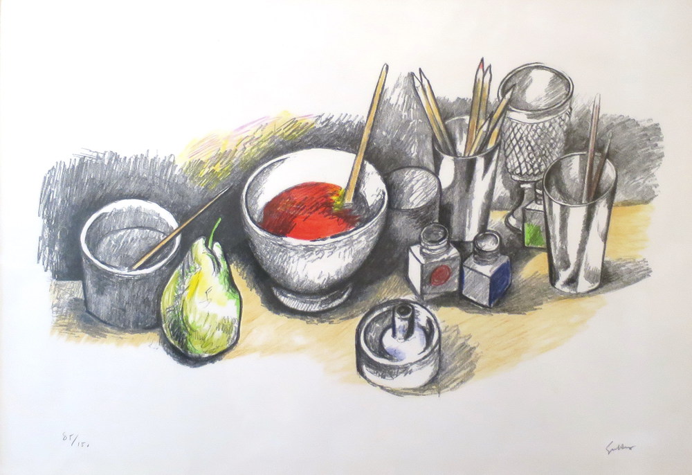 RENATO GUTTUSO, Renato Guttuso litografia - cm 47.5 x 67 - raff. "matite e pera" 85/150 - firmato in basso a dx
