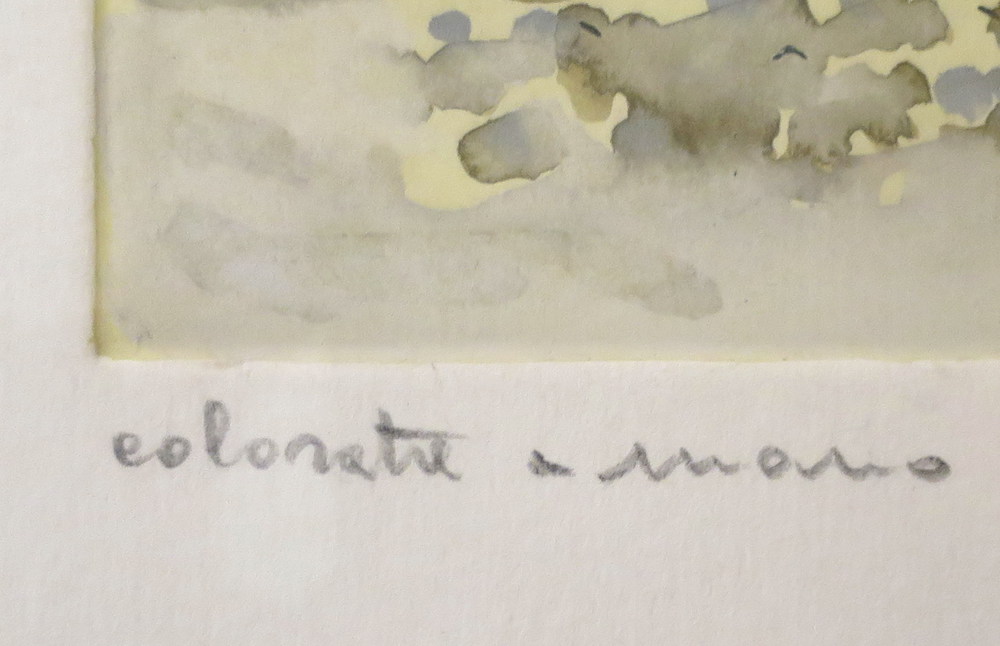 ORFEO TAMBURI, Orfeo Tamburi stampa acquerellata colorata a mano raff....