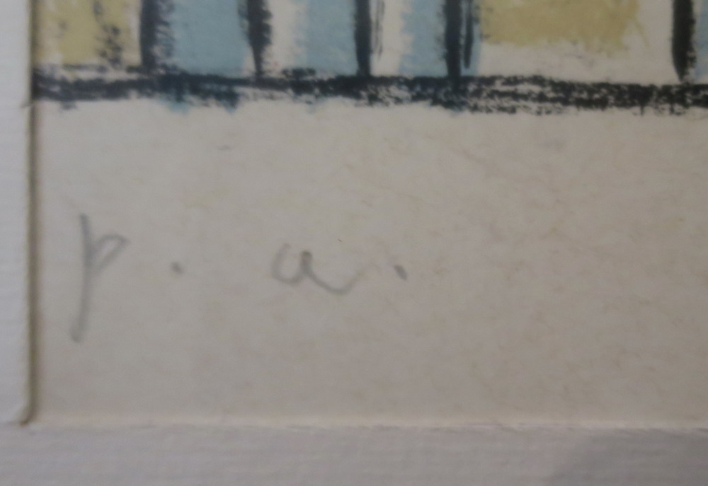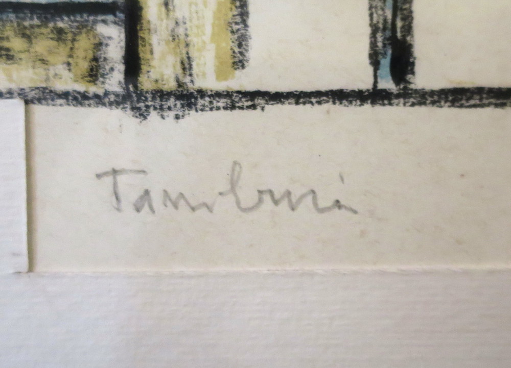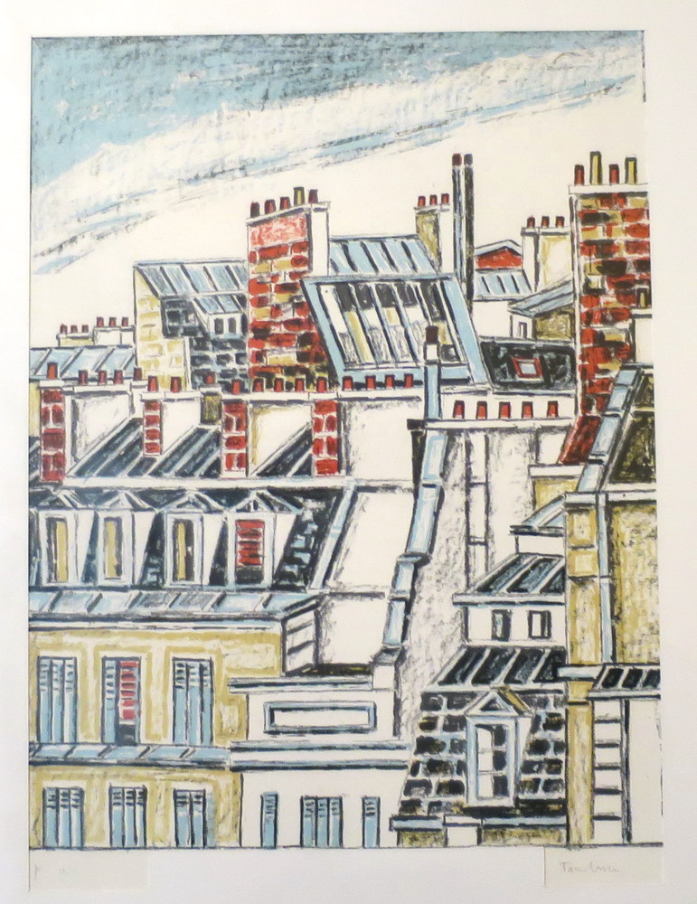 ORFEO TAMBURI, Orfeo Tamburi litografia prova d'autore raff. "tetti" - cm 45 x 33.2