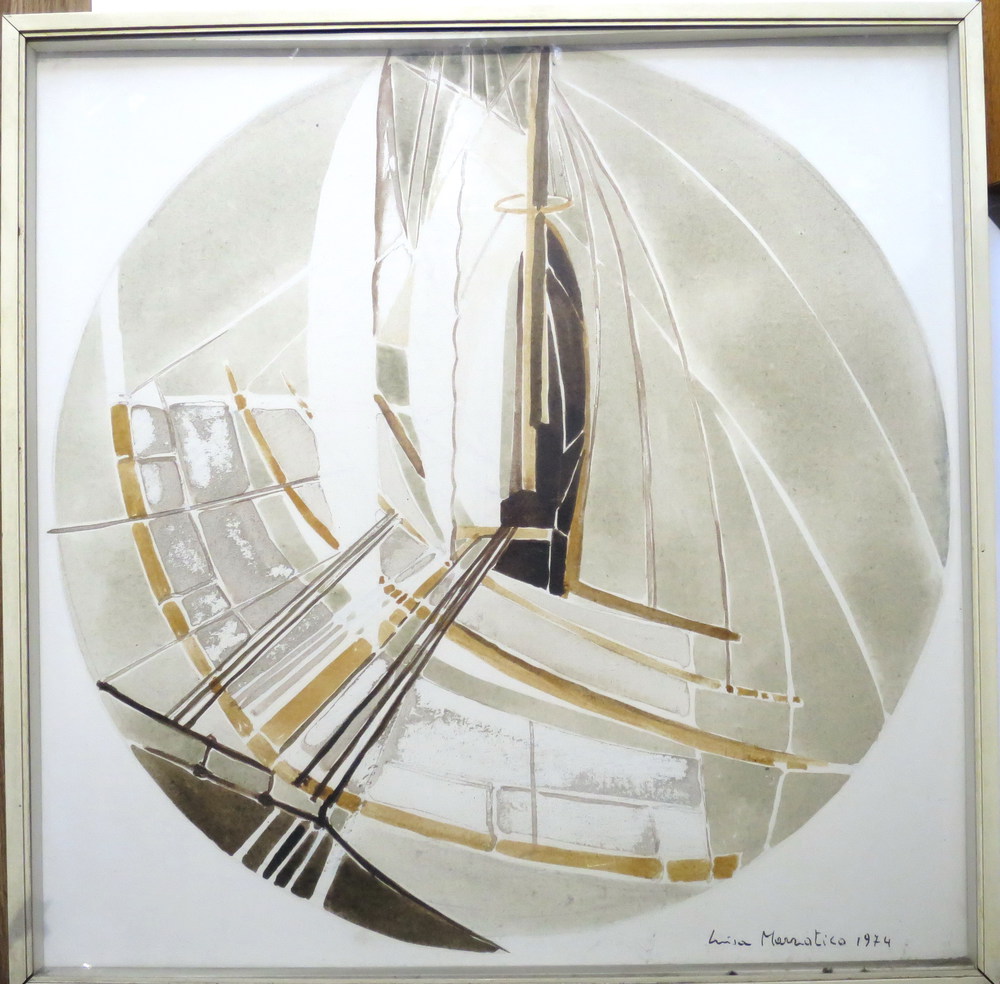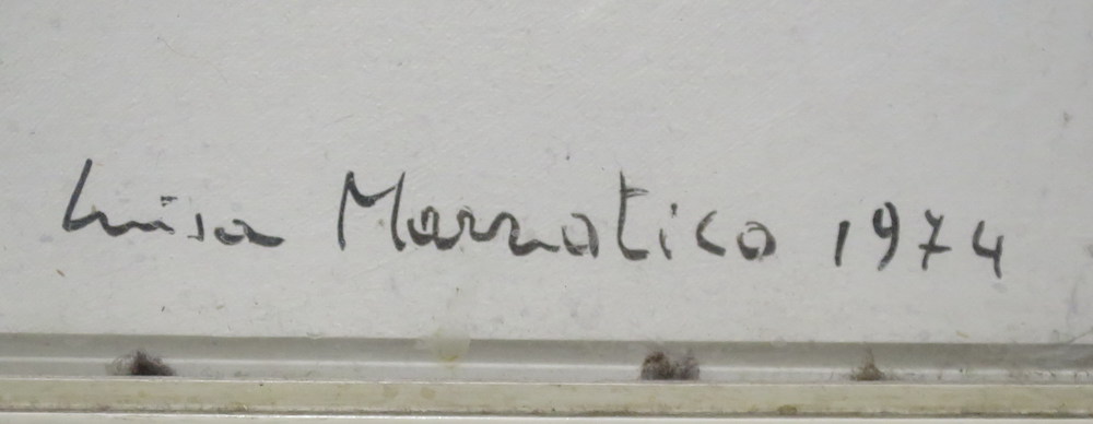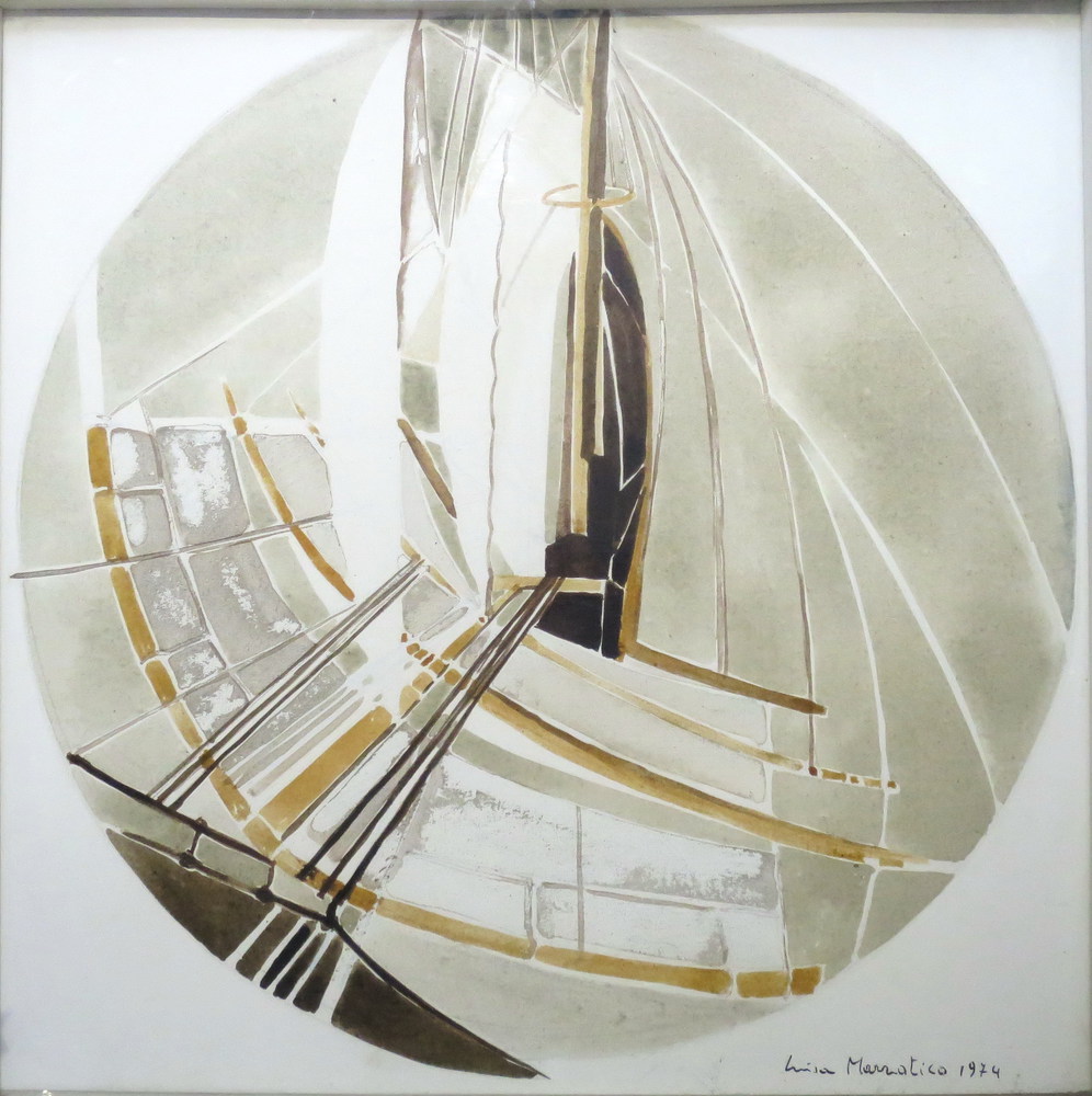 LUISA MARZATICO, Luisa Marzatico olio su tela raff. "Cerchio in astratto" - cm 70 x 70 - firmato e datato '74 in basso a dx