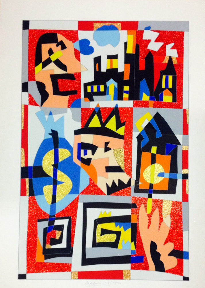 UGO NESPOLO, Ugo Nespolo "Fantasia in rosso" serigrafia polimaterica firmata e numerata 30/150 - cm 100 x 70