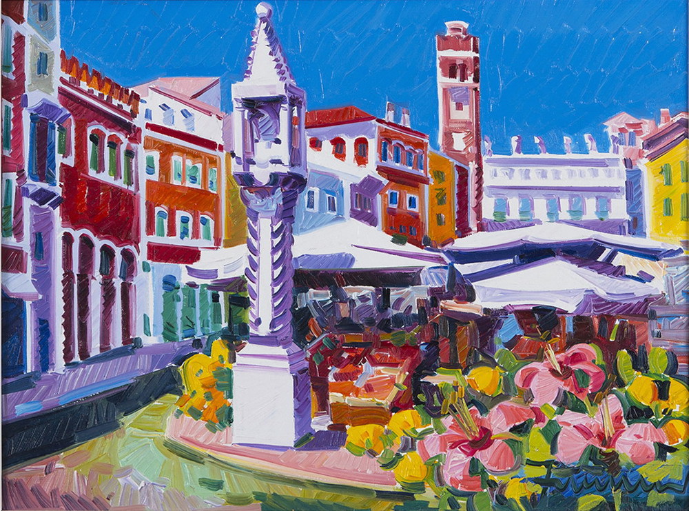ATHOS FACCINCANI, Athos Faccincani olio su tela "Deliziosa piazza erbe" - cm 40 x 30