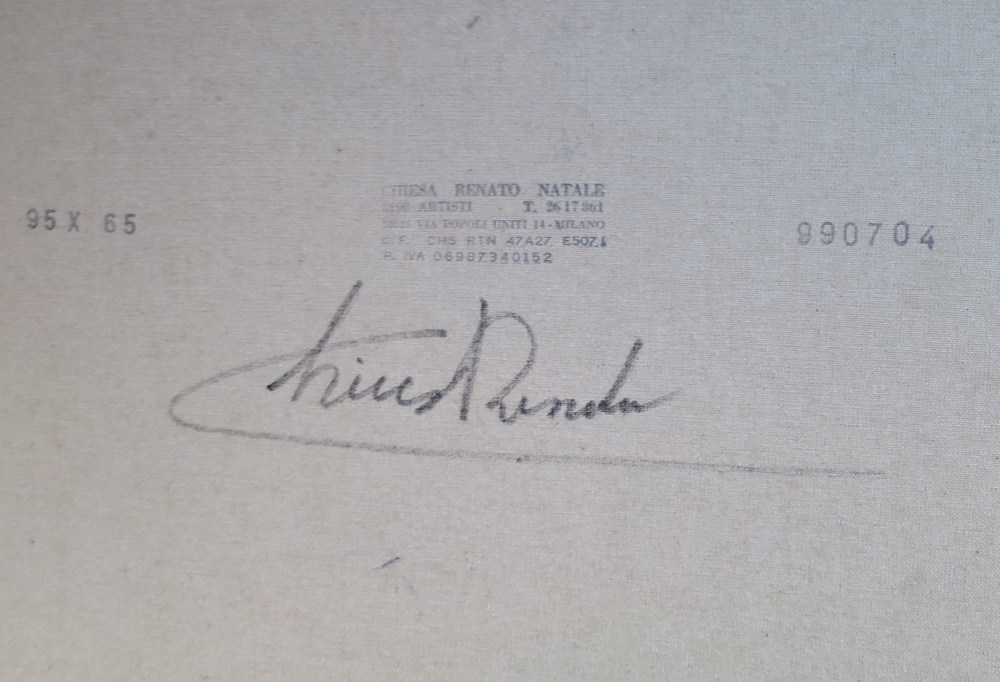 RENATO NATALE CHIESA, Dipinto olio su tela "sfere" cm 65 x 95