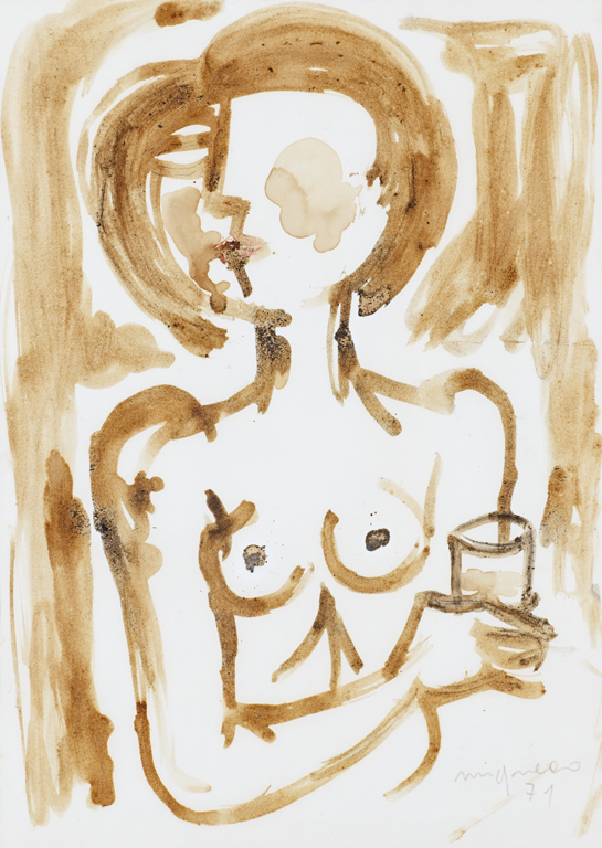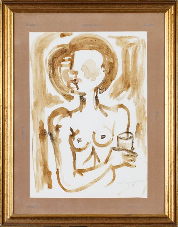 GIUSEPPE MIGNECO (1908-1997)Figura, 1971Gouache su carta cm 45x32Firma e...