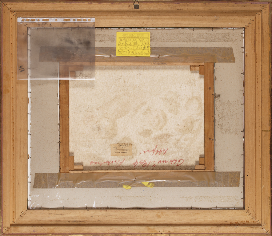 Firma, titolo, datazione e dichiarazione di autenticità dell'Artista al retro