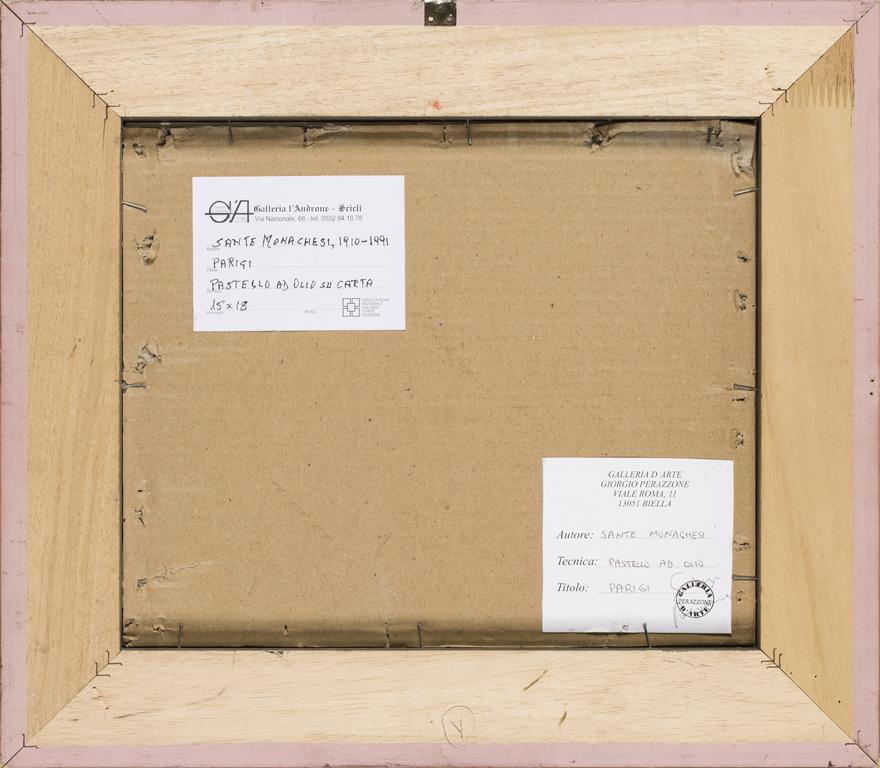 SANTE MONACHESI (1910-1991)ParigiPastelli ad olio su cartacm 15x18Firma al...
