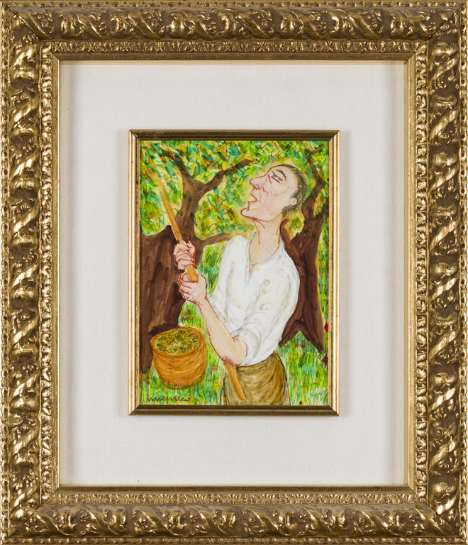 GIUSEPPE MIGNECO (1908-1997)Contadino, 1985Tecnica mista su carta intelatacm...