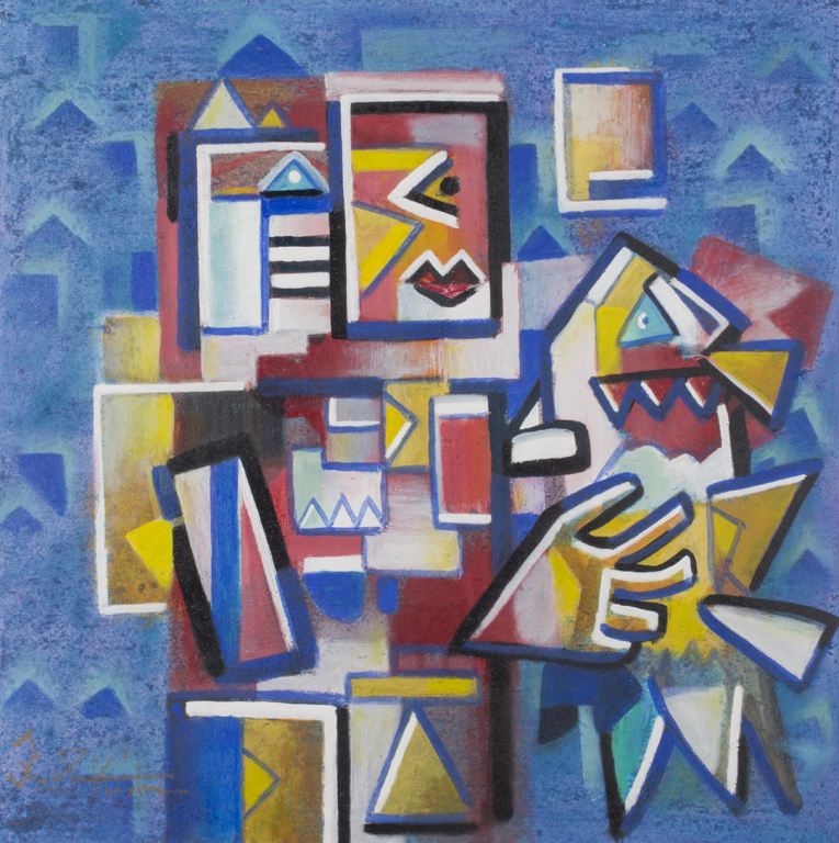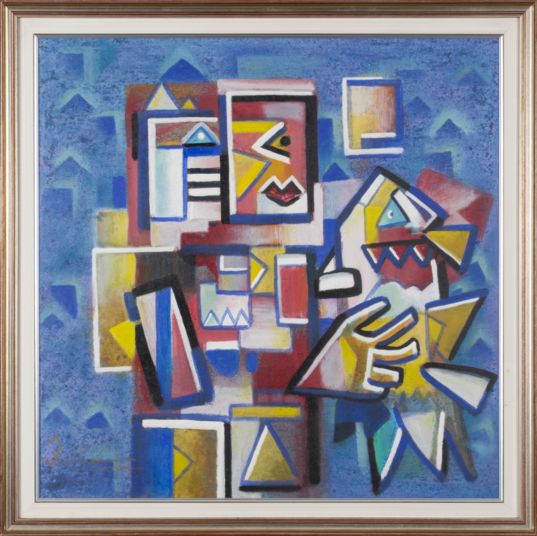 IBRAHIM KODRA (1918-2006)Bambina con pesceOlio su telacm 70x70Firma al...