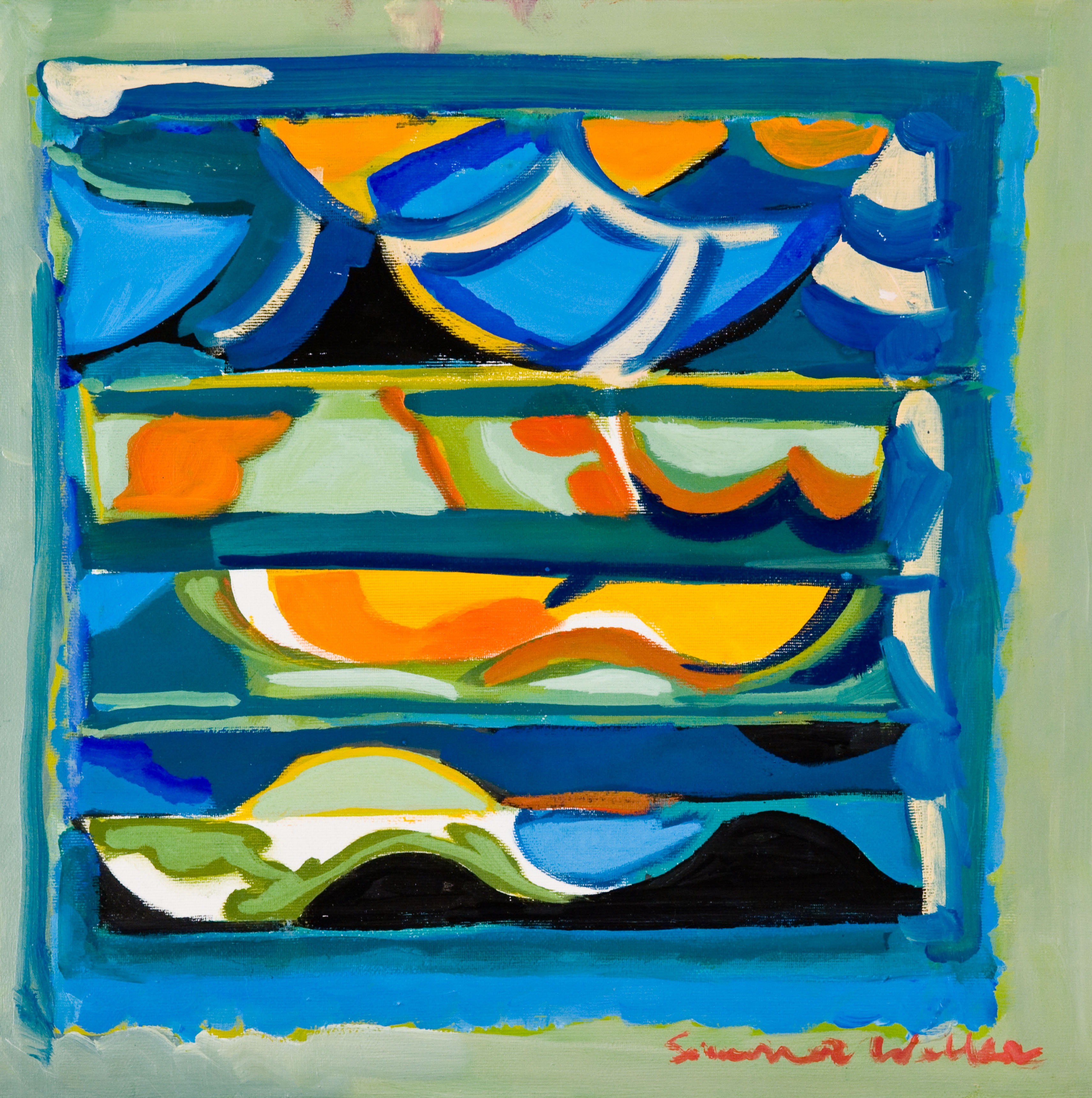 Simona Weller Autunno nell'oceano, 1987 Olio su tela, cm. 40x40 Firmato in basso a destra. Sul verso: firma, titolo, data e dedica a persona; Timbri Archivio Simona Weller", Roma.