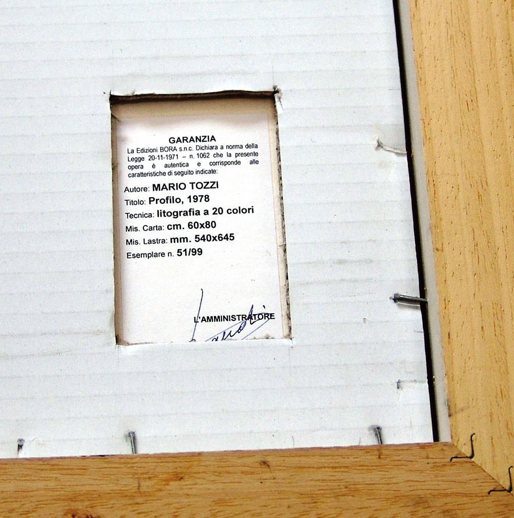Mario Tozzi 1895, Fossombrone (Pu) - 1979, Saint-Jean-du-Gard (Francia) - [Italia] Profilo litografia 80x60 cm 1978 es. 51/99; firma dell'artista in basso a destra; opera con cornice certificato di autenticità della Edizioni Bora di Bologna sul retro
