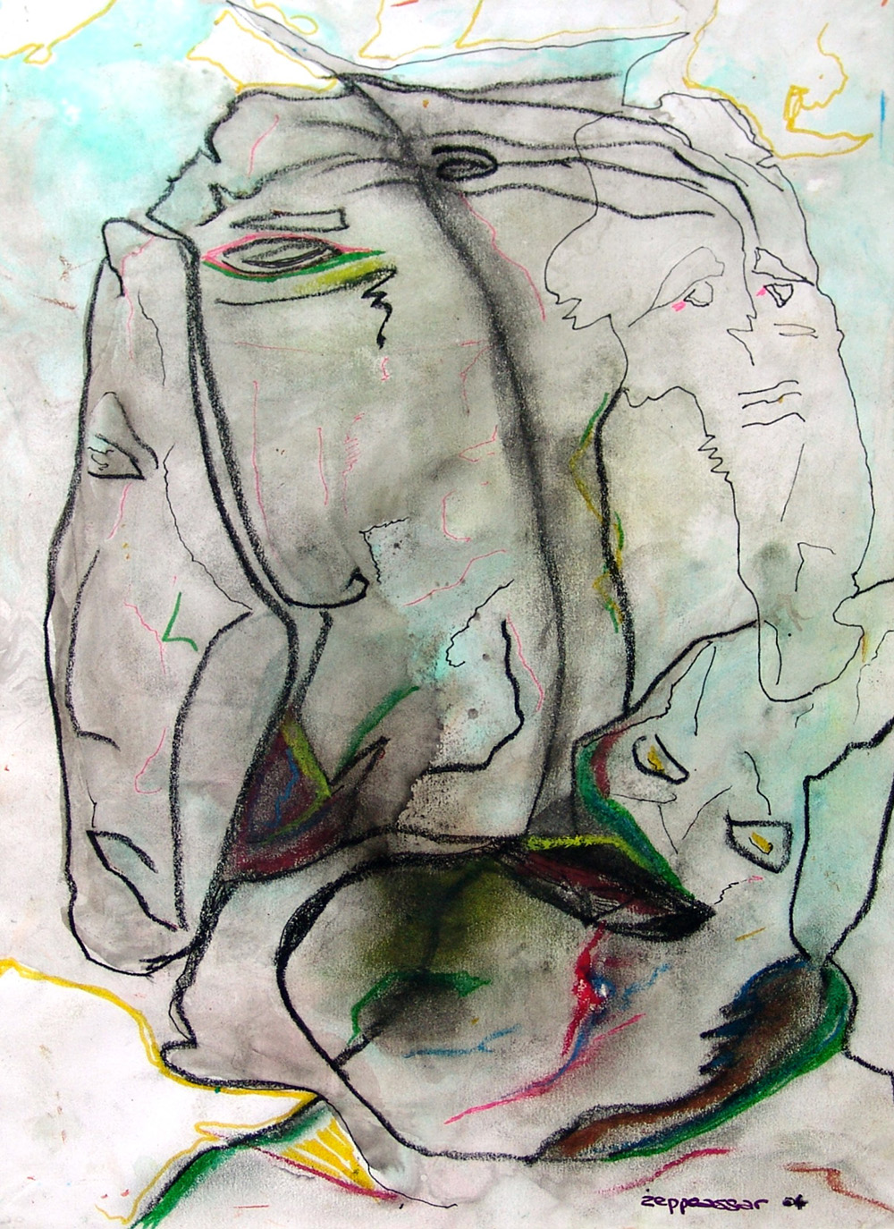 Zepp Cassar 1962, Qormi - [Malta] 4 facce tecnica mista su carta 29x20 cm 2004 firma dell'artista in basso a destra certificato di autenticità Picenum