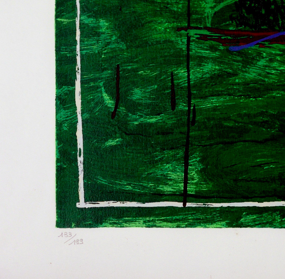 Mario Schifano 1934, Homs (Libia) - 1998, Roma (Rm) - [Italia] Casetta serigrafia materica a smalto su carta 100x70 cm 1993 es. 133/199; firma dell’artista in basso a destra; opera con cornice certificato di autenticità e provenienza Telemarket