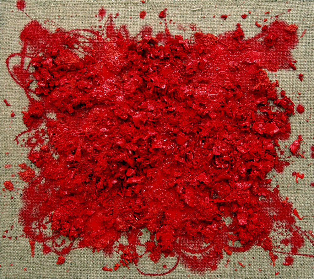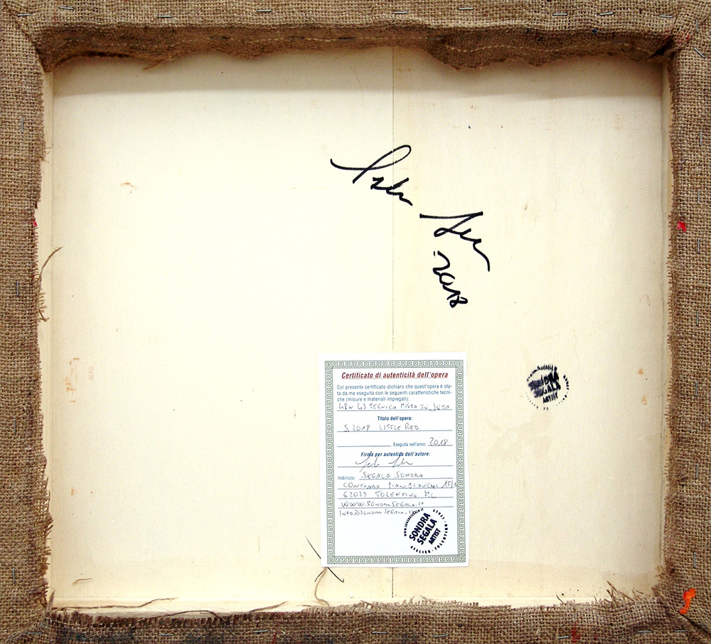 Sondra Segala 1963, Tolentino (Mc) - [Italia] S 2018 Little Red tecnica mista su juta 43x48 cm 2018 firma dell’artista sul retro certificato di autenticità firmato dall'artista sul retro