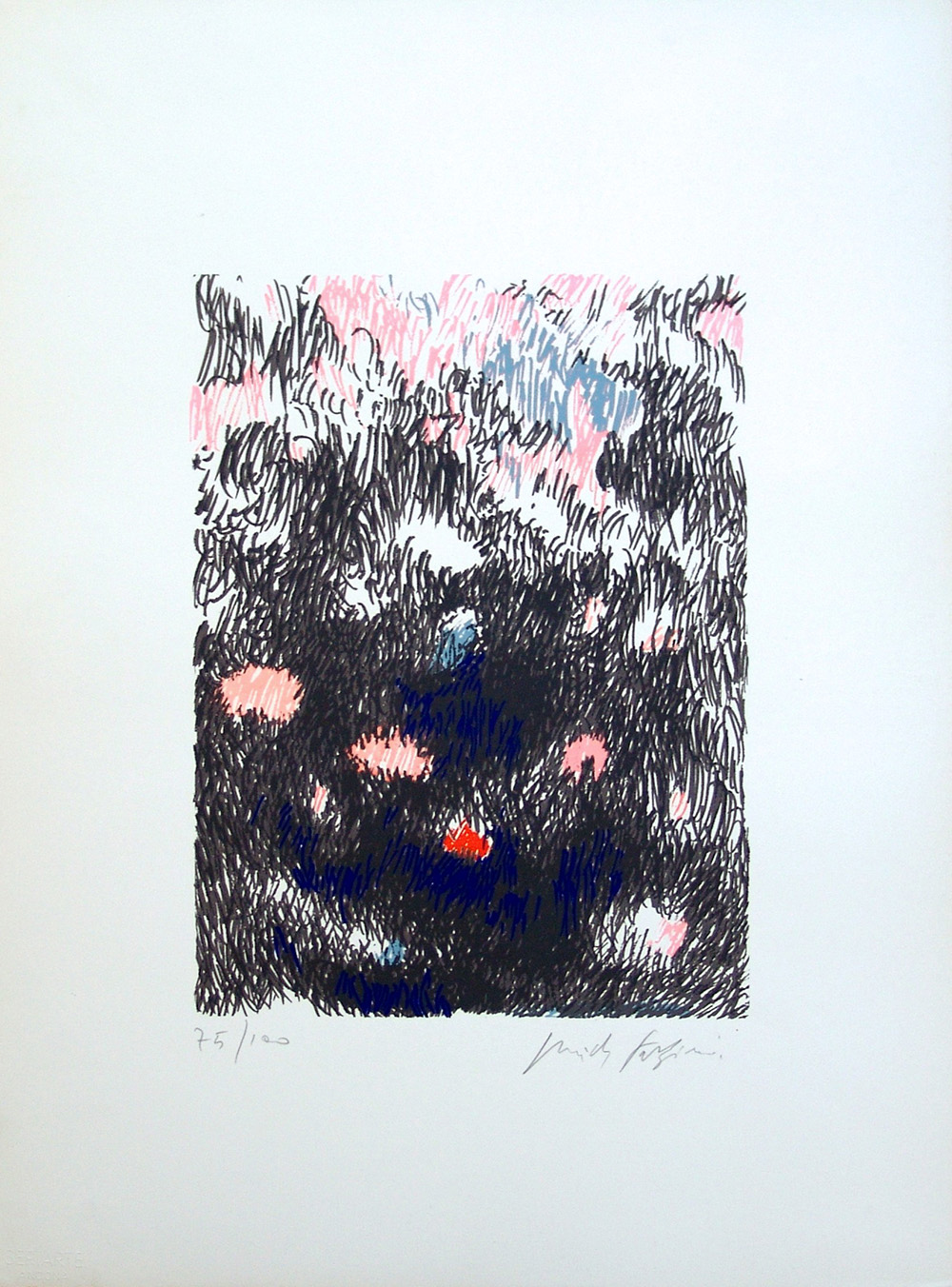 Pericle Fazzini 1913, Grottammare (Ap) - 1987, Roma (Rm) - [Italia] senza titolo serigrafia 70x50 cm es. 75/100; firma dell’artista in basso a destra e timbro Seri Arte di Ancona in basso a sinistra certificato di autenticità Picenum
