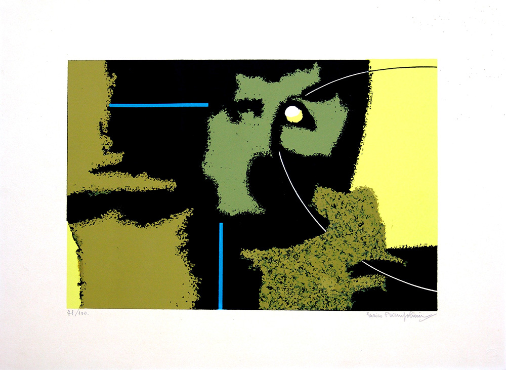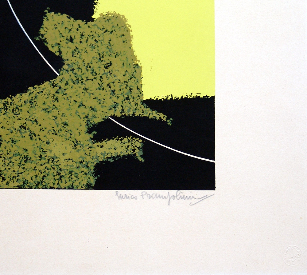 Enrico Prampolini 1894, Modena (Mo) - 1956, Roma (Rm) - [Italia] Composizione cosmica serigrafia 38x50 cm es. 71/100; firma dell’artista in basso a destra; timbro Libreria Prandi di Reggio Emilia certificato di autenticità Picenum