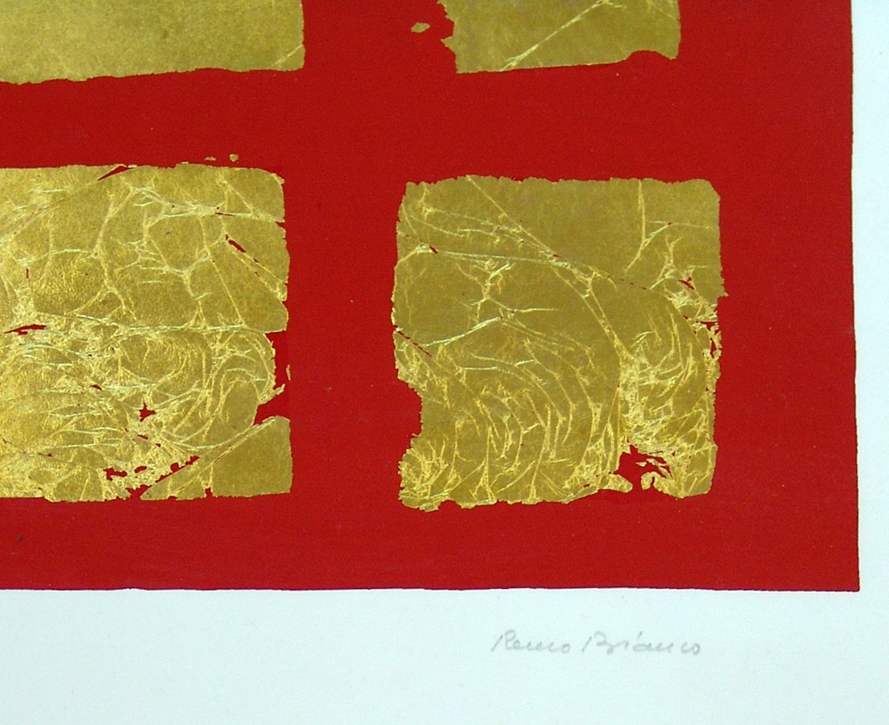Remo Bianco 1922, Milano (Mi) - 1988, Milano (Mi) - [Italia] Tableau d'oré litografia con foglia oro 69x49 cm c. 1975 es. 176/250; firma dell'artista in basso a destra; opera con cornice certificato di autenticità Picenum