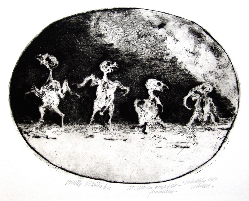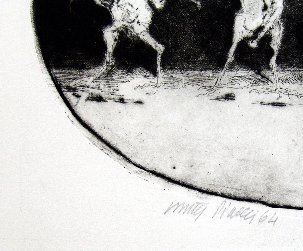 Walter Piacesi 1929, Ascoli Piceno (Ap) - [Italia] senza titolo acquaforte e puntasecca 35x40 cm 1964 es. unico; firma dell’artista in basso a sinistra certificato di autenticità Picenum; opera pubblicata nel catalogo generale dell'opera grafica di Walter Piacesi