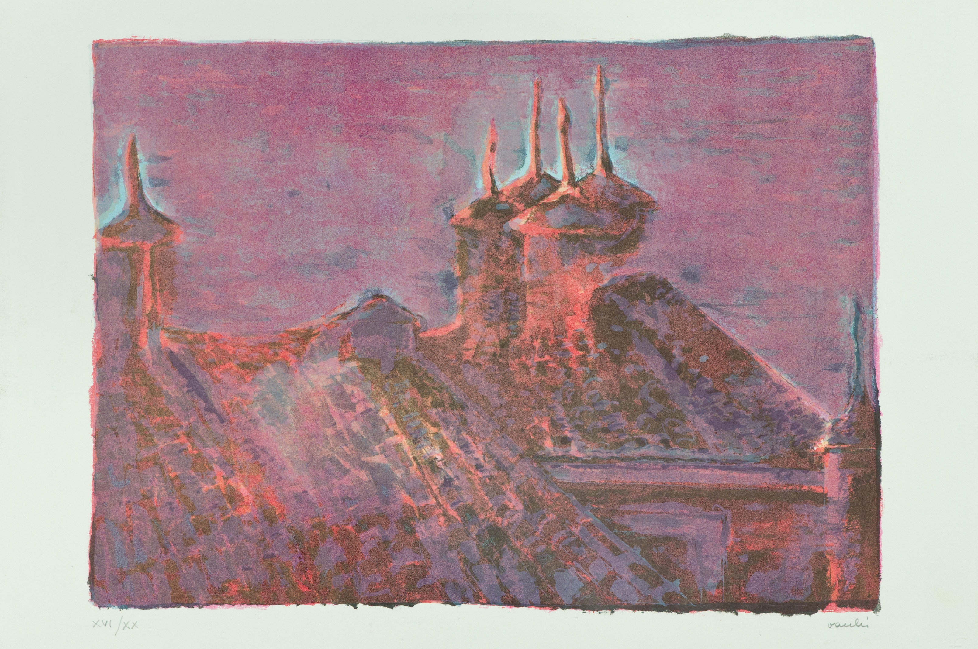 Rapisardi Alfio, Vacchi Sergio Lotto unico di due Opere - "Alfio Rapisardi", Il fante di picche", Litografia su carta, cm. 70x50, es. P.A., firmato in basso a destra; - "Sergio Vacchi", Paesaggio, Litografia su carta, cm. 50x70, es. XV/XX, firma in basso a destra, tiratura in basso a sinistra.