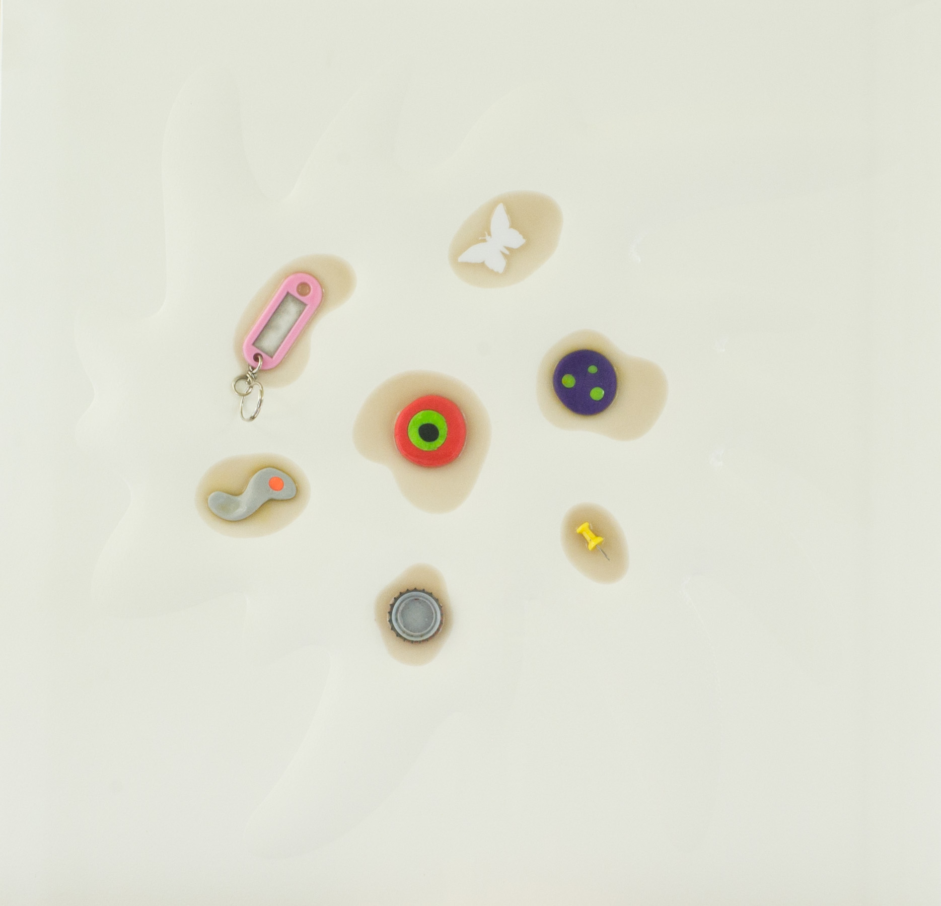 Renzo Nucara Bang 10 - 37, 2011 Legno, carta, colore serigrafico, resine ed oggetti, cm. 50x50 in teca di plexiglass Sul verso: firma, titolo e numero d'Archivio. Autentica dell'Artista su foto con Archivio n° 0114301.