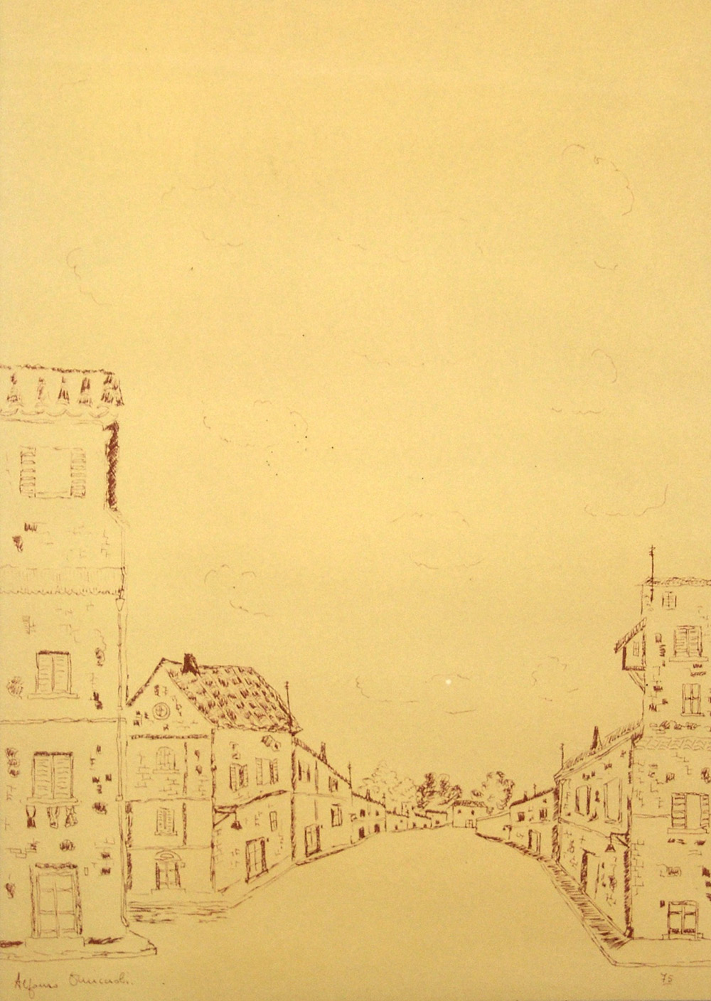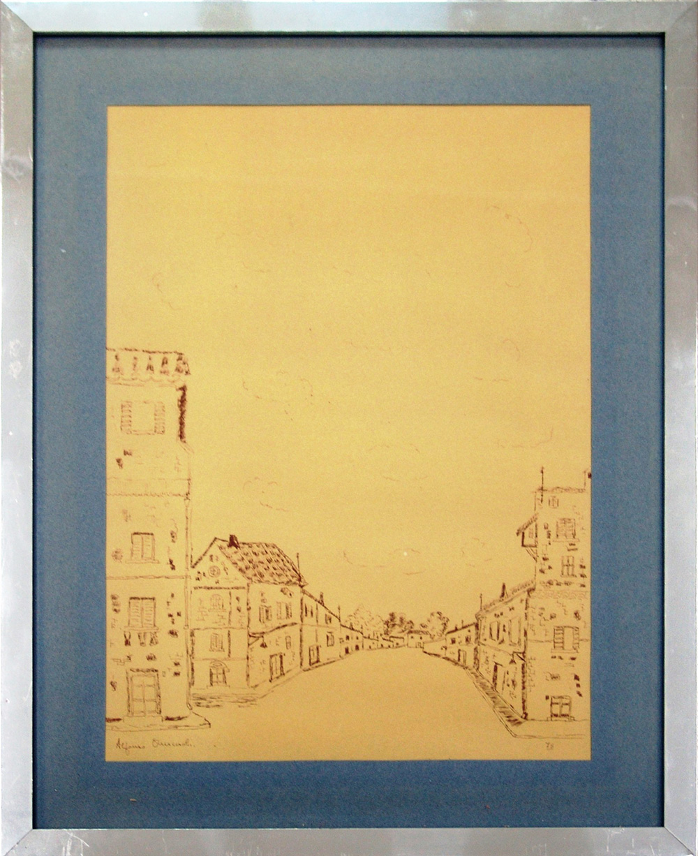 Alfonso Omiccioli 1923, Roma (Rm) - [Italia] senza titolo china su carta 50x35 cm 1975 firma dell’artista in basso a sinistra; opera con cornice certificato di autenticità Picenum