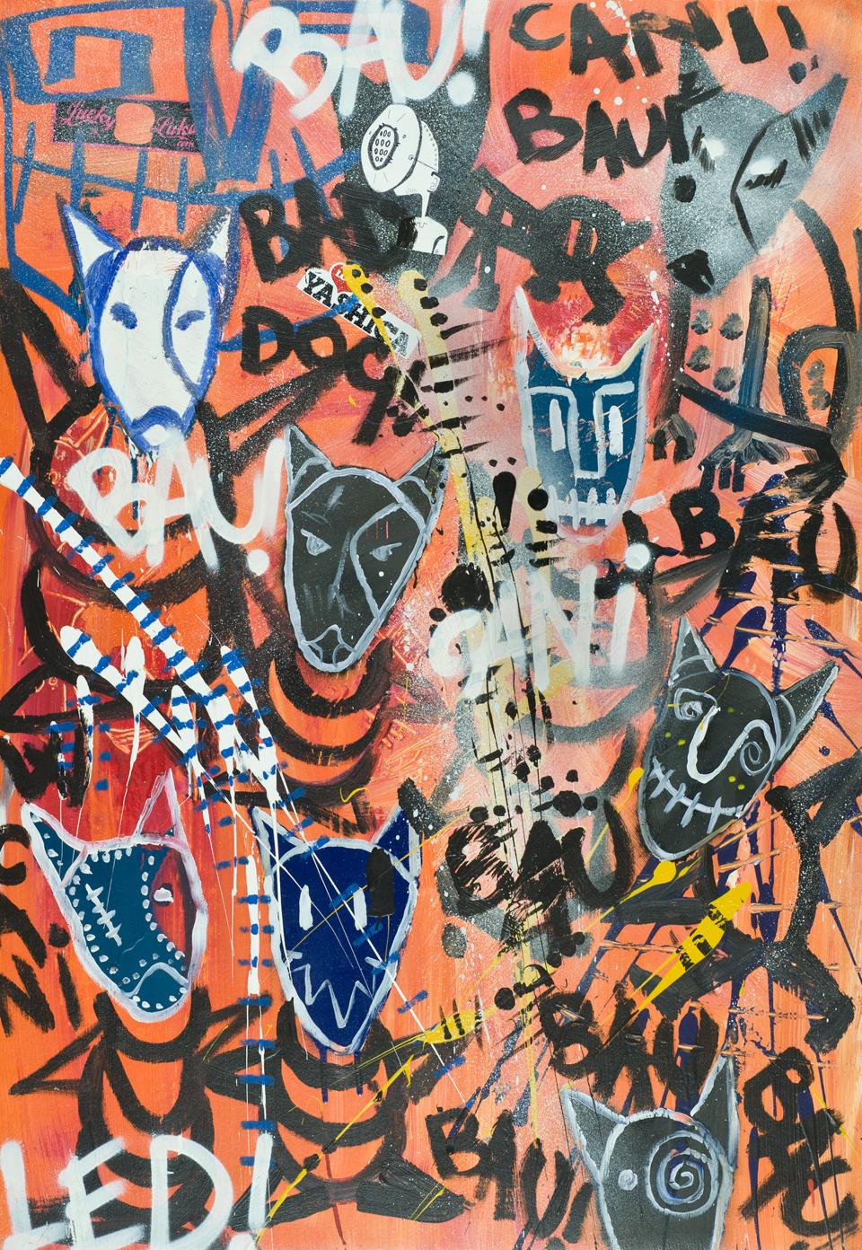 Led (Alessandro Apollonio) Cani + cani, 2007 Tecnica mista su tela, cm. 100x70 Firmato in basso a sinistra. Sul verso: firma, data e titolo. Bibliografia: "Streetart", con stralci critici di Vittorio Sgarbi e presentazione di Gianluca Gaudio, edizioni Telemarket comunication, pag. 119. Autentica dell'Artista su foto con Rif. n° LD 48.