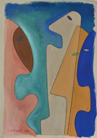 Luigi Veronesi COMPOSIZIONE tempera e matita su cartone, cm 50x35,5 firmato,...