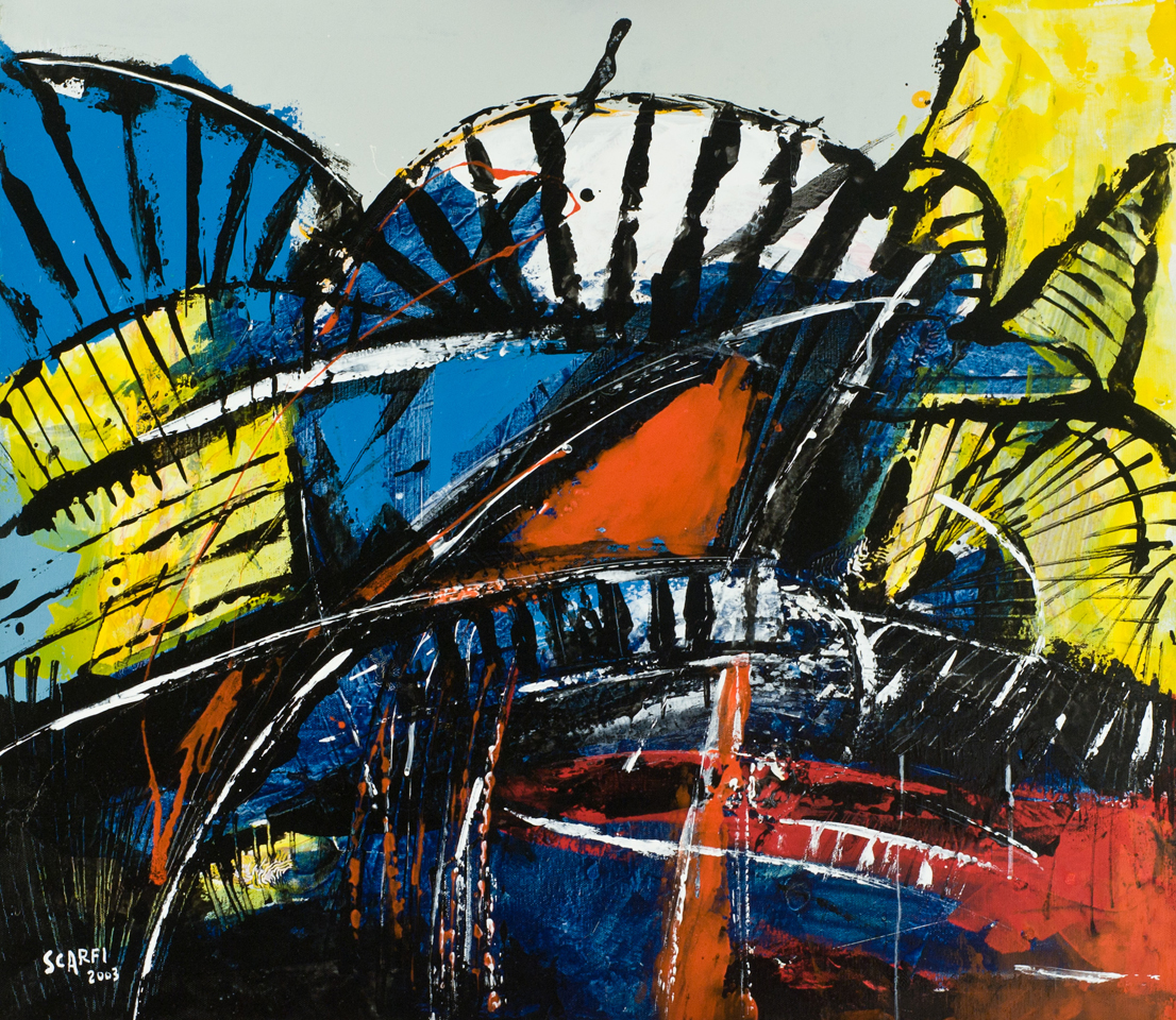 Attilio Scarfi Sintesi, 2003 Acrilico e smalti su tela, cm. 70x80 Firma e...