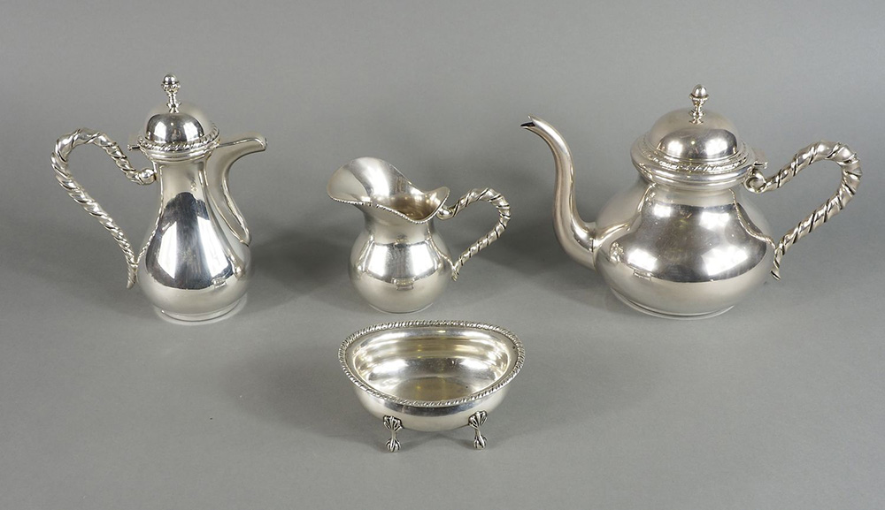 Servizio da caffè e thè in argento composto da 4 pezzi. Gr. 1075.