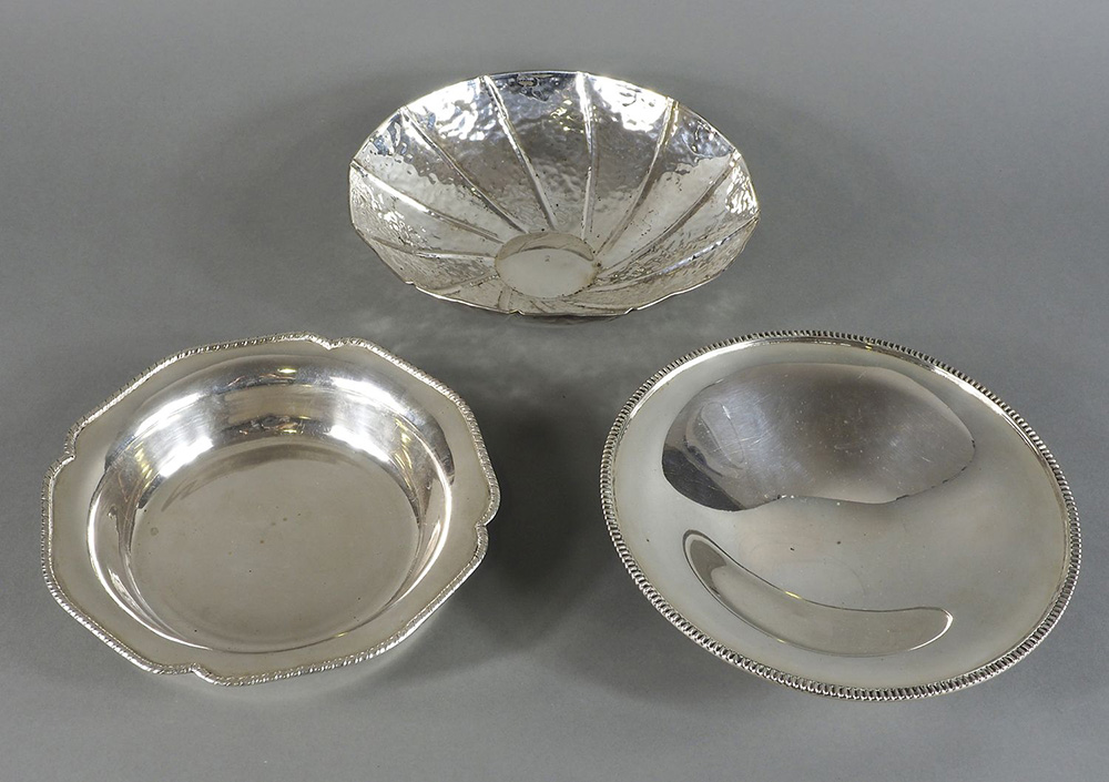 Lotto di 3 cestini rotondi in argento. Gr. 675.
