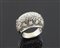 Anello cupola in oro bianco con lavorazione a traforo, parte centrale pavè di...