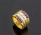 Anello in oro giallo con 2 fili di diamanti taglio brillante per 0,50 circa totali e 2 fili di rubini naturali. gr. 10,32.