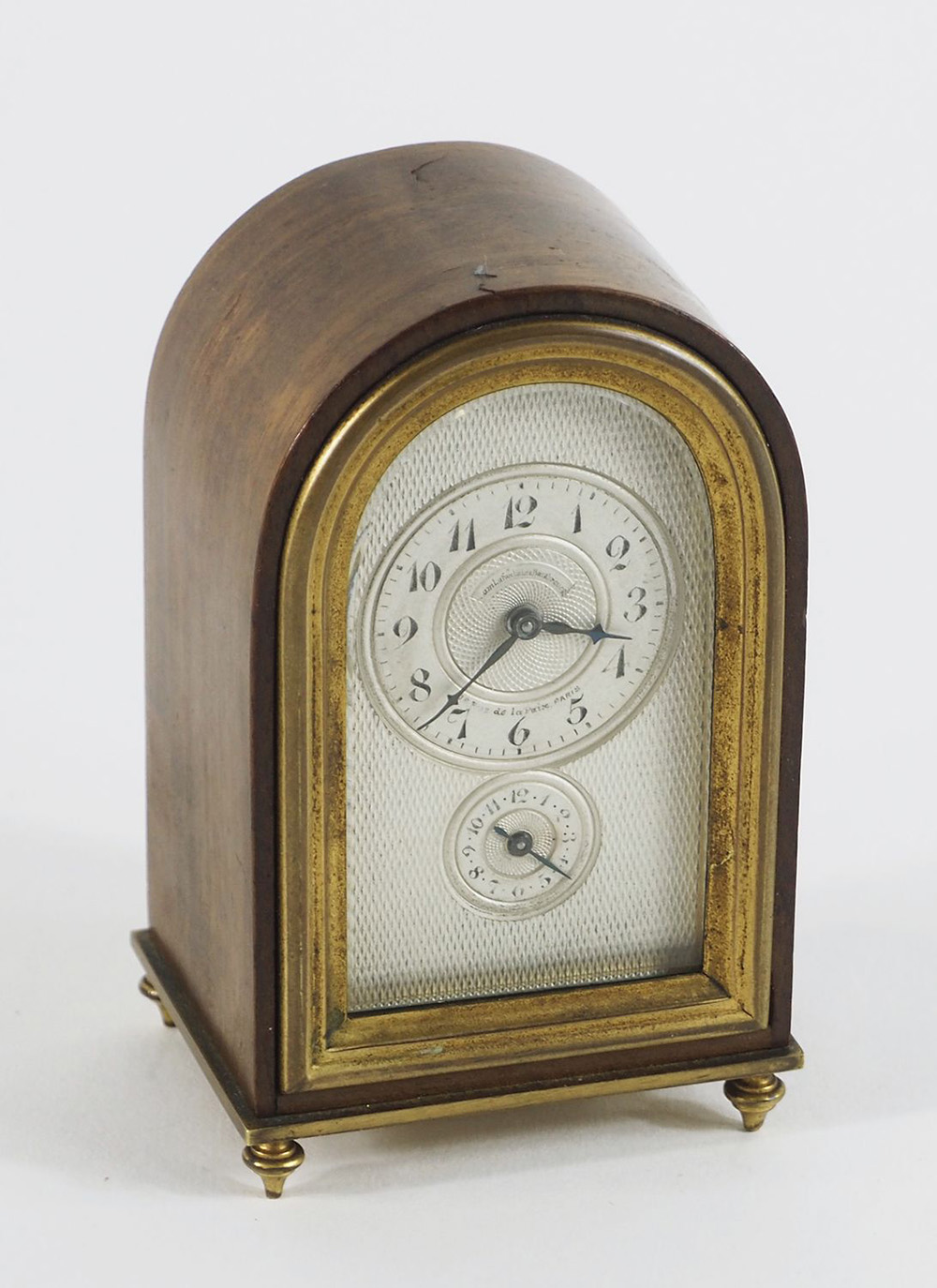 Lot 57 | Orologio da tavolo a lunetta in legno e ottone. H. cm. 10.