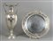 Lotto in argento composto da vaso lavorato a sbalzo e piatto rotondo con...