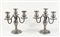 Paio di candelieri a 3 fiamme in argento lavorati a coste verticali. H. cm....