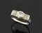 Anello in oro bianco a ponte con montatura traforata e 3 diamanti taglio antico, primi '900