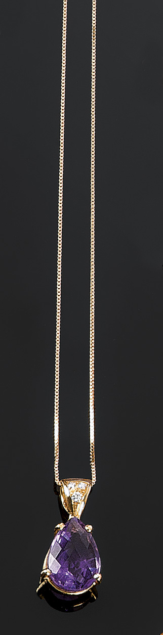 CATENA CON CIONDOLO Catena in oro giallo con ciondolo con ametista taglio a goccia pendente Peso gr. 6,00