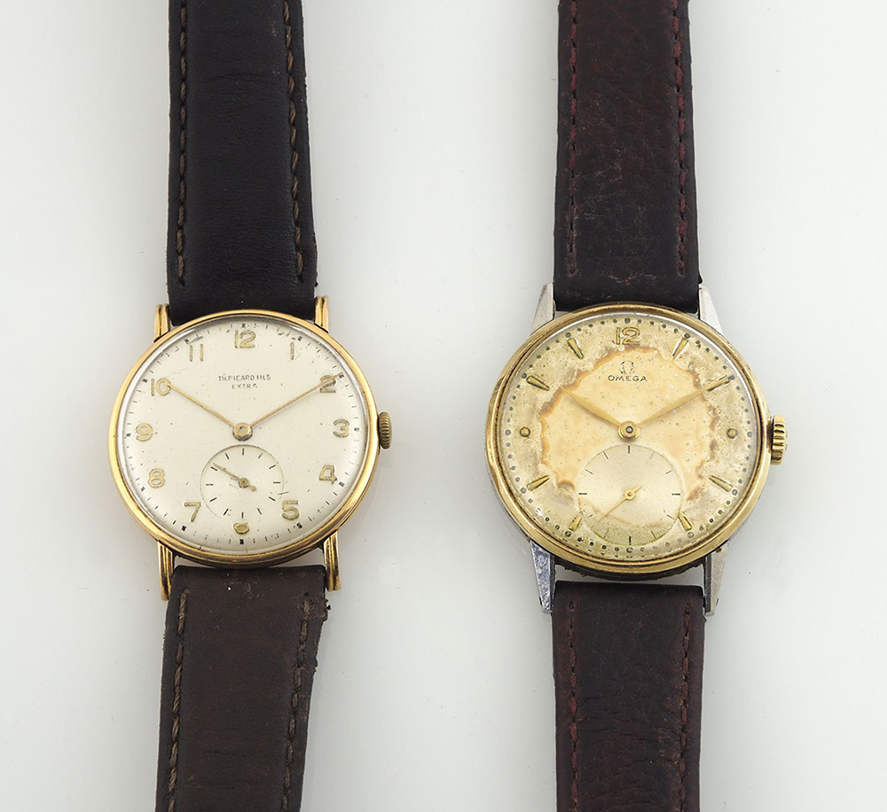 Lotto di 2 orologi da polso, Omega e Picard Fils in oro giallo.