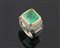 Anello in oro bianco e giallo con al centro smeraldo per ca ct 5, contornato su tutti lati da diamanti taglio e baguette per ca tot ct 2,5