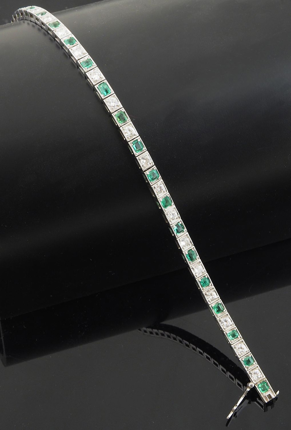 Bracciale tennis in oro bianco con 20 diamanti taglio brillante per tot ca ct 2,20 alternati da 20 smeraldi naturali per tot ca ct 2,40