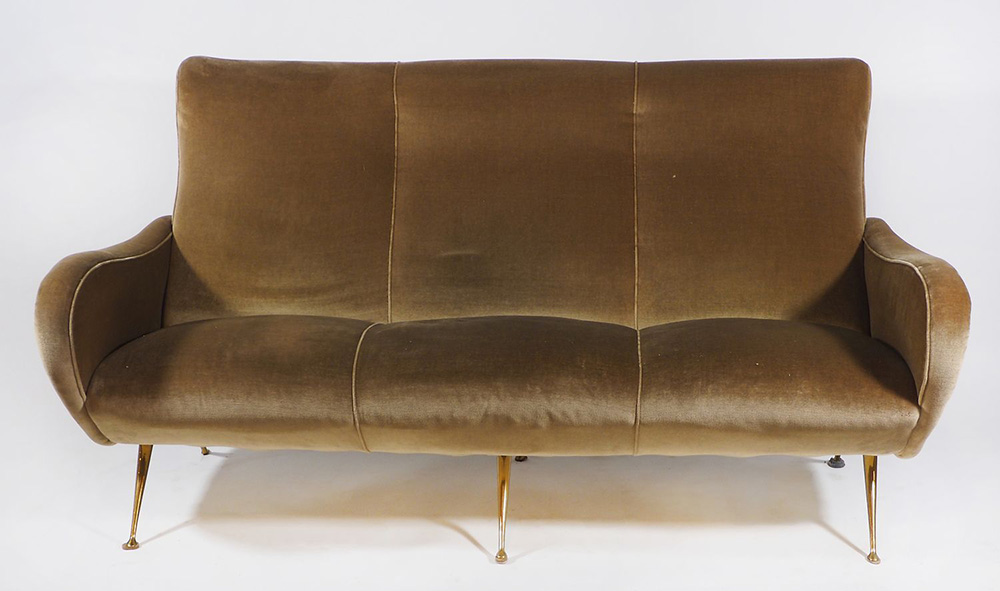 Salotto composto da divano a 3 posti e coppia di poltrone. Anni '50.